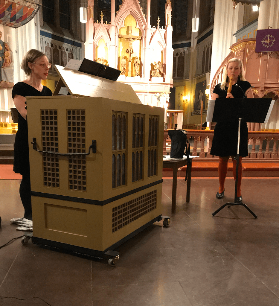 8 mars på Internationella kvinnodagen gav duo Kondens en konsert med kvinnor i fokus. Både kompositörerna samt framförarna var kvinnor och vi uruppförde Maria Löfbergs verk ”Wind on Wind”. Det var spännande att blanda in musik av/med Whitney Houston i ett annars klassiskt och folkmusikbaserat program. En kommentar som vi fick av en besökare var att hen önskat att texten till de verk som var textbaserade skulle ha funnits med i programbladet. Det är en intressant reflektion och förslag, som kommentar så finns det olika sätt att förhålla sig till musik och det kan finnas förtjänster i att inte presentera en text (som inte framförs) eftersom det skapar utrymme för egna tolkningar och ett större fokus på musiken och den egna fantasin. Å andra sidan är det möjligt att vissa aspekter i musiken går förlorade när texten till stycken som bygger på en stark text inte presenteras. Jag tänker att det finns både för och nackdelar med detta. Nästa konsert med detta program tror jag att vi kommer ta med texterna och lämna upp till publiken att antingen läsa dem eller inte.